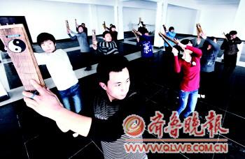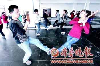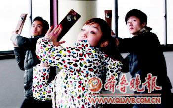 大學生們正在排練“陰陽板”。