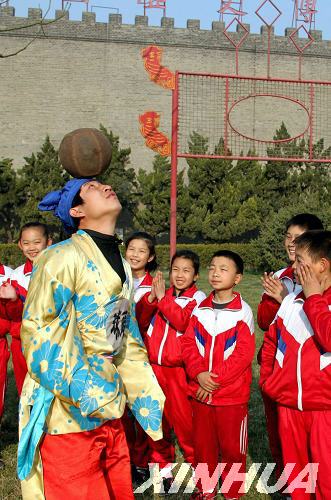 新華網(wǎng)山東頻道3月29日電 “蹴”是用腳踢,“鞠”是皮質(zhì)的球,“蹴鞠”就是用腳踢球之意。古時(shí),相傳清明節(jié)要寒食禁火,為防止寒食冷餐傷身,蹴鞠成為清明節(jié)的重要民俗活動(dòng)之一。作為該項(xiàng)古老運(yùn)動(dòng)的起源地,臨淄將蹴鞠進(jìn)行普及,再現(xiàn)其魅力。