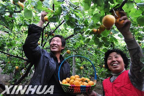 新華網山東頻道4月13日電 日前,山東省鄒平縣賀家村果農培育出的新品種“賀家一號”水杏喜獲豐收。據悉,該品種水杏由當地山杏和普通水杏嫁接培育而成,比普通水杏上市早兩個月左右。