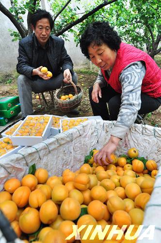 [提要] 4月12日,山東省鄒平縣賀家村果農在采摘水杏。新華網山東頻道4月13日電 日前,山東省鄒平縣賀家村果農培育出的新品種“賀家一號”水杏喜獲豐收。4月12日,山東省鄒平縣賀家村果農將豐收的水杏裝筐。