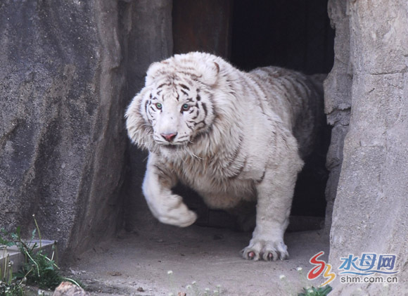 [提要] 昨天,在山東煙臺南山公園,一只罕見的白虎與游客見面。