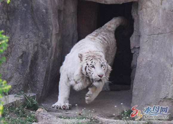 據(jù)介紹,白虎剛?cè)胱游飯@虎館,很不適應(yīng),顯得郁悶、焦躁。飼養(yǎng)人員將另一只雄性東北虎關(guān)入內(nèi)籠舍,只讓一只雌性東北虎隔著護(hù)欄與它作伴。同時,為它配置了營養(yǎng)餐。