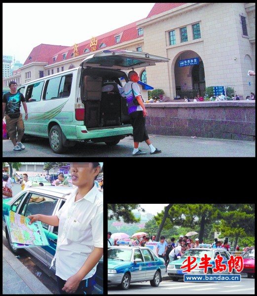 隨著島城旅游進入高峰期,火車站周邊出租車不規(guī)范運營的現(xiàn)象也日益突出。7月30日,記者對火車站周邊和前海一線部分旅游景點的客運亂象進行了暗訪 ,發(fā)現(xiàn)一口要價、拒載乘客、違法?康取袄厦 贝笮衅涞 。記者還發(fā)現(xiàn),一些出租車司機甚至客串“導(dǎo)游”拉客。青島市道路運輸管理局工作人員表示,交通稽查執(zhí)法人員將盡快展開調(diào)查,對記者反映的各種營運亂象進行重點整治。