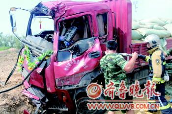 6日中午,文登市現(xiàn)代路發(fā)生一起兩車相撞事故。一輛大貨車與另一輛重型自卸車在路口相遇時(shí),均未讓行對方導(dǎo)致兩車相撞。大貨車司機(jī)被困駕駛室內(nèi),后有交警找來工程車拖拽一鋼絲繩拉開變形車門,被困司機(jī)借此得救。