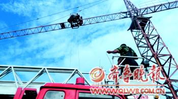 高達(dá)15米的塔吊上,一名正在操作機(jī)器的男子被鋼絲纜繩擊暈,當(dāng)場(chǎng)昏倒在塔吊橫梁上。26日中午,在經(jīng)區(qū)泊于鎮(zhèn)寨子?xùn)|村北海邊一養(yǎng)殖場(chǎng)碼頭上,經(jīng)區(qū)消防大隊(duì)動(dòng)用舉高車,成功解救下這名男子。