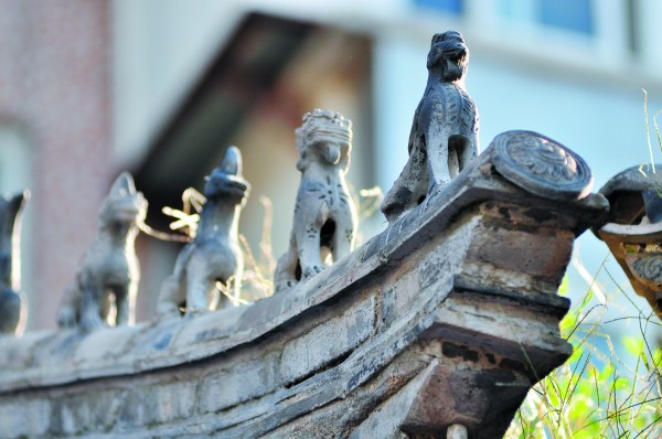 9月17日下午,記者來到位于興隆街的小廣場,遠遠望去,這個坐落于居民區(qū)的小廣場再普通不過,最大的亮點便是位于正中間的這座古建筑。石磚青瓦,雕梁畫柱,四角翹起的屋脊,整齊排列的石獸……