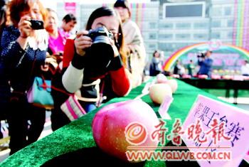 10月15日下午,最優質“蘋果王”大賽在沂源縣文化廣場進行。評選現場,上百個蘋果并驅爭先。經過一番激烈的爭論和緊張的評選,沂源縣中莊鎮馬蘭峪村薛金唐果農種植的長富2號蘋果獲得“蘋果王”稱號。此蘋果520.8克,拍賣價格為8888元。