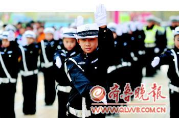 4日,在天橋文體館前,來自堤口路小學的50名“小交警”表演學校與交警部門自編的韻律操。當天是全國第12個法制宣傳日,天橋交警大隊舉辦了《道路交通安全法》宣傳活動。 本報記者 王媛 攝