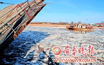 連續數日的低溫天氣導致黃河水面出現大面積冰凌,組裝通車僅3天的濼口浮橋3日下午再次拆除。濼口浮橋管理處有關人士告訴記者,由于氣溫持續較低,冰凌一時難以融化,估計至少要三天才能恢復通車,但需要根據氣溫變化來定。 本報記者 周青先 劉帥 攝影報道