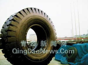 橡膠化工是我市民營經(jīng)濟特色產(chǎn)業(yè)之一,圖為平度一企業(yè)生產(chǎn)的巨型輪胎。 劉紅星 攝