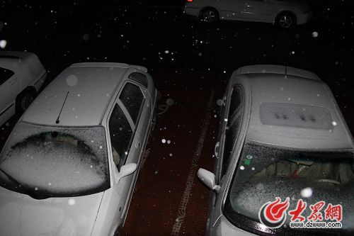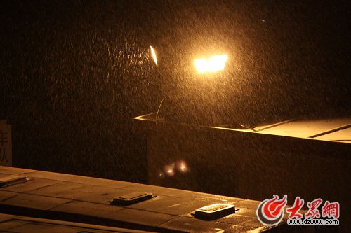 大眾網濟南11月11日訊 今晚8點多鐘,久候的雪花終于從濟南上空飄落。飄飄灑灑間,裸露在空氣中冰冷的物體表面已經積下雪白一片。 記者 趙爾印 攝影報道