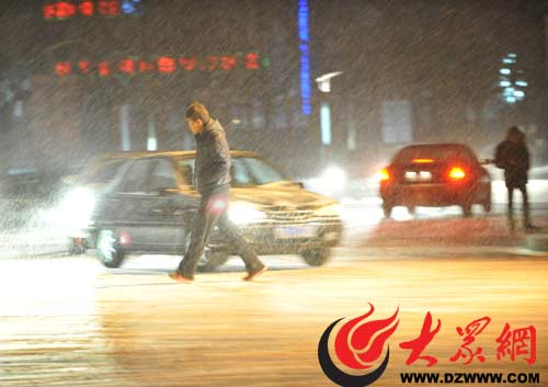 大眾網2月10日訊 “不經意間往窗外一看,天那,下雪了!紛紛揚揚的雪花,在門前路過的汽車車燈的照耀下顯得如此的密集”,瑞雪迎春,今天晚上,一場大雪悄然光臨泉城,給濟南又平添了幾分年的味道,大眾網眾眾微博的博友們紛紛通過微博報起了雪情。據網友“博報”,泰安、日照等下起了大雪,青島的地面上已經結起的冰。博友們還提醒過年回家的人們要注意安全,“遙祝所有正在趕路回家和即將回家過年的游子們,一路順風。”