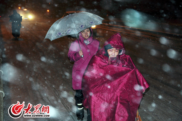 瑞雪迎春,10日晚上,一場大雪悄然光臨泉城,給濟南又平添了幾分年的味道,大眾網眾眾微博的博友們紛紛通過微博報起了雪情,據網友“博報”,泰安、日照等下起了大雪,青島的地面上已經結起的冰。博友們還提醒過年回家的人們要注意安全,“遙祝所有正在趕路回家和即將回家過年的游子們,一路順風!