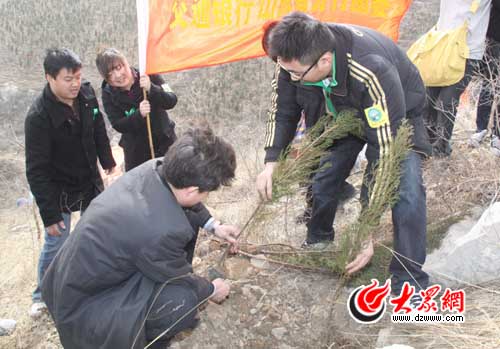 早晨七點半不到,已經有近百名大眾網網友相約來到山東新聞大廈,等待共同乘車前往臘山植樹。他們分別是來自交通銀行山東分行、工商銀行山東分行營業部、安利(中國)山東分公司、山東中齊房地產開發有限公司和濟南德輝進口大眾4S店的職工以及山東各大高校學生和社會愛心市民,他們都想通過實際行動來踐行環保義務。