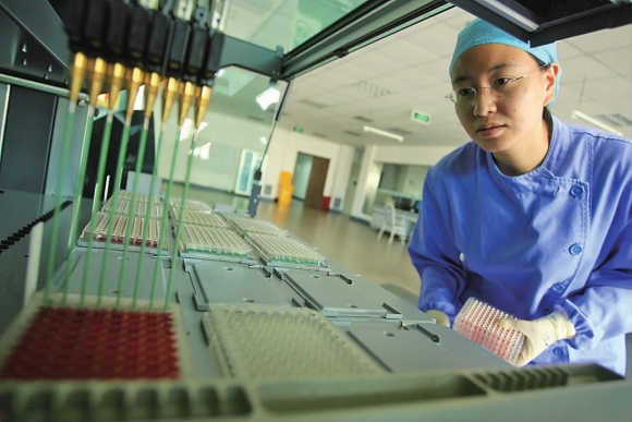 全自動(dòng)血液檢測(cè)系統(tǒng)對(duì)血液進(jìn)行檢測(cè)。