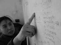 在墻上記者看到了這個電話號碼,在這個號碼周圍,還有許多電話也同樣被記在墻上,孫秋蓮告訴記者,這些都是各地愛心人士的電話,他們有的為柯璐提供偏方,有的給他們鼓勵(上圖)。這面墻有些發黑,顯然,這面記滿電話號碼的墻時常被觸摸。
