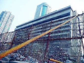 本報1月25日訊(記者 李飛 實習生 任輝) 1月25日下午,記者在齊魯賓館施工現(xiàn)場看到,與前一天相比,賓館北面靠近經(jīng)十路一側已經(jīng)搭起了防護網(wǎng),自東向西橫亙在賓館前。