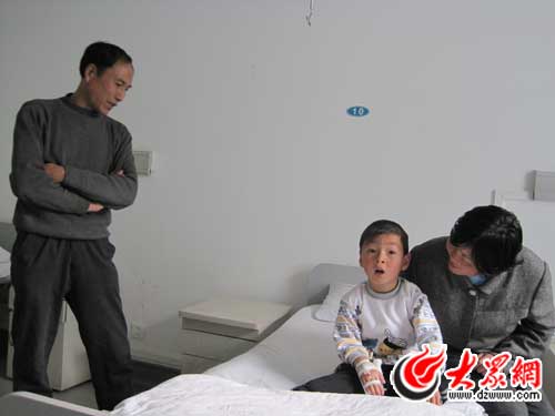 在濟南軍區(qū)心血管病研究所,記者見到了小永康和他的養(yǎng)父母。養(yǎng)父尹加元告訴記者,2006年4月,尹加元在客運汽車上賣票謀生時,車輛行至平邑縣民政局門口,一群圍觀者引起了尹加元的好奇,撥開人群,他看見一個嬰兒奄奄一息地躺在紙箱中,頭部有多處針眼,蒼蠅和蚊子不斷落在嬰兒的臉上。看著可憐的嬰兒,尹加元便抱起紙箱中的他帶回了家。