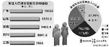 人口普查數據公報顯示,在全國合計1339724852常住人口中,人口最多的廣東省常住人口突破1億大關,常住人口達到104303132人,占全國常住人口的7.79%。
