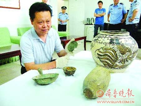 經(jīng)查,盜賊都是當(dāng)時(shí)在該建筑工地干活的民工。其中,鳳紋罐被一名鄄城籍農(nóng)民盜走后,以10萬(wàn)元的價(jià)格售于當(dāng)?shù)匾晃奈锸詹卣,此人告訴辦案民警,曾有人出價(jià)200萬(wàn)欲購(gòu)買(mǎi)它,他沒(méi)舍得賣(mài)。