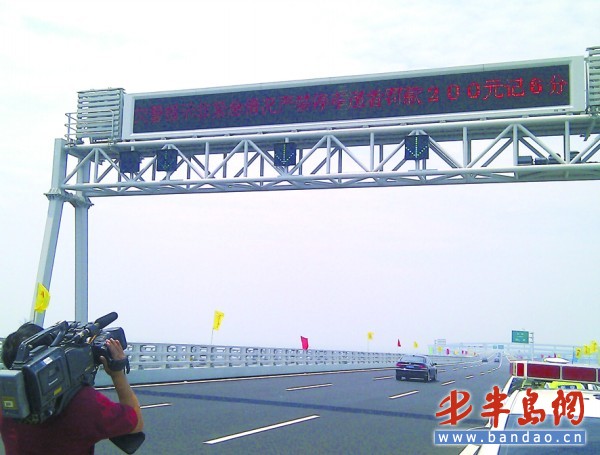 據(jù)畢進本介紹,目前他們在膠州灣大橋上采取的是移動測速,每天都有3輛車上橋,主要停在車輛停放較多的三座航道橋路面上,此外他們在橋面上還有57處監(jiān)控點,主要抓橋面上亂停車和超速等違法行為。此外,膠州灣大橋上將來還要建卡口攔截點,遇到在橋面上違法的車輛,該攔截點將自動報警,這樣也將方便交警部門查處橋面上車輛違法現(xiàn)象。