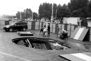 而對于突然發生的地面塌陷,不少市民做出了猜測。一位在附近工作的環衛工告訴記者:“前不久這附近一小區要安裝集中供暖的管道,因此將路面刨開,挖了四五米深的大坑,而這個大坑恰巧距塌陷的大坑只有幾十米遠。五六天前又來了不少工作人員不停地抽水,我覺得這可能是導致地面下陷的原因之一。”