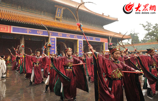[提要] 今天上午,在略帶涼意的秋雨之中,2011中國(曲阜)國際孔子文化節(jié)迎來高潮——2011辛卯年祭孔大典在曲阜孔廟舉行。