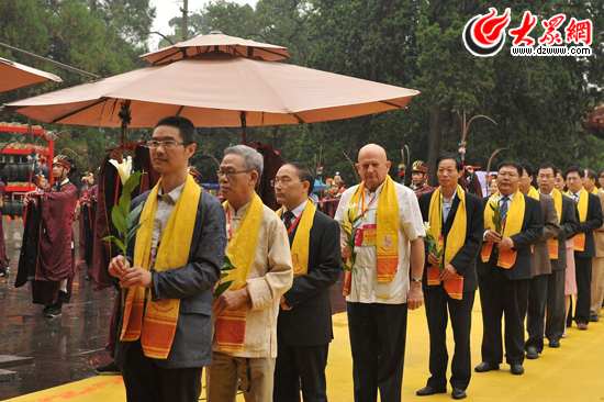 據(jù)史料記載,祭祀孔子的活動始于孔子去世后的第二年(公元前478年),最初每年只有秋季一次,至東漢時實行春秋兩祭制。另據(jù)了解,國家有關(guān)部委領(lǐng)導(dǎo),聯(lián)合國教科文組織官員,國際友人、華人華僑等海內(nèi)外嘉賓約2100人參加了今天的公祭。