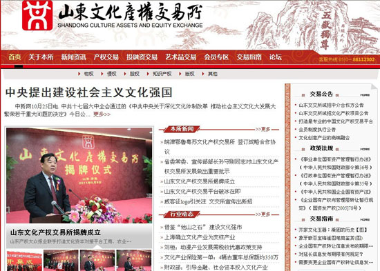 山東文化產權交易所營業 本網承建網站上線