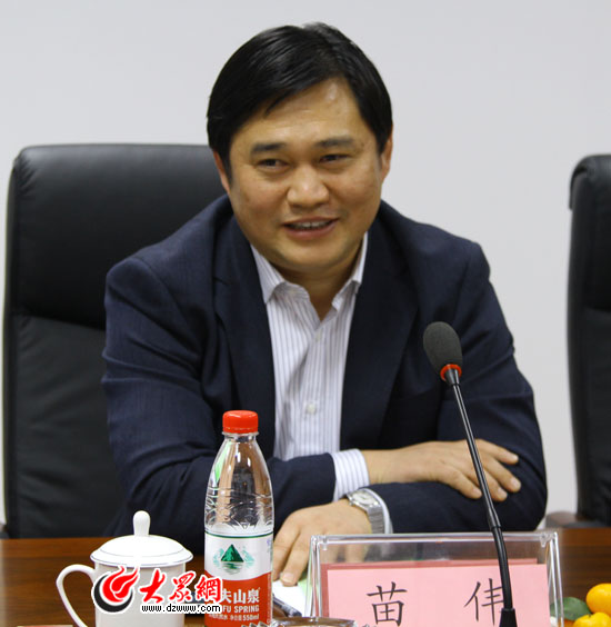 山東產權交易中心總裁苗偉介紹中心情況。
