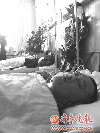 22日,受重傷的三名聯防隊員正在醫院接受治療。本報記者徐艷攝