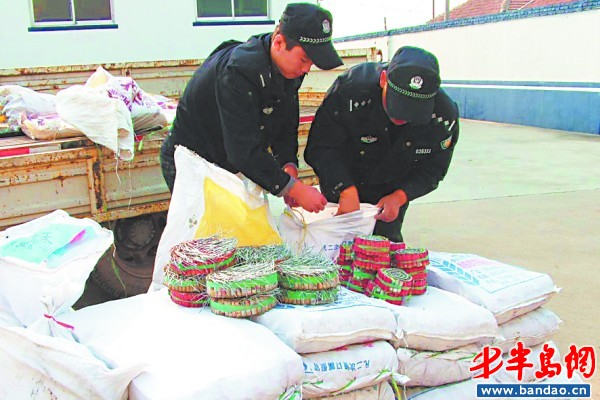 經檢查,民警發現農用車的后斗內裝了一些東西,還用一塊大編織布蓋著,“掀開一看,農用車上裝的正是非法私制的一捆捆土鞭”,民警將兩人帶到派出所進行審查。