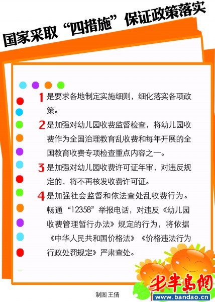 在如何保證幼兒園收費政策落實問題上,發改委相關負責人表示,將要求各地制定實施細則,細化落實各項政策;加強對幼兒園收費監督檢查,將幼兒園收費作為全國治理教育亂收費和每年開展的全國教育收費專項檢查重點內容之一。