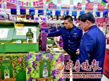 ◤工商執法人員在商場、超市進行檢查(資料片)。 本報記者 李飛 攝