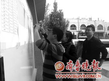 ◥面試成績很快就張榜公布了,考生正在拍成績單。
