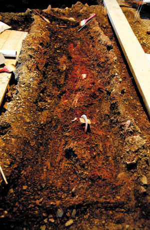 然而,記者采訪了解到,就目前的發(fā)掘情況來看,這種推測有著“說不通”的一面。在古墓長達(dá)三個(gè)多月的發(fā)掘過程中,考古人員先是在古墓的北側(cè)發(fā)現(xiàn)了戰(zhàn)馬陪葬坑,陪葬坑中的戰(zhàn)馬遺骨保存的相當(dāng)完整,甚至連每一根肋骨都是完整的保留著。此外,在古墓南端的陪葬坑中發(fā)現(xiàn)了大量的動物尸骨,很多尸骨從形狀上甚至能清晰地分辨出動物種類。