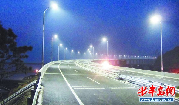 記者在即墨市豐城鎮(zhèn)通往大橋的攔海大壩上看到,為了方便市民安全駕車前往大橋,攔海大壩路面上也安裝了路燈,路邊還安裝了三四公里黃黑色相間的防護墩,可有效提示司機安全行車。晚上8時30分,記者驅(qū)車從即海大橋最南端駛上濱海公路,這條剛修好的濱海公路最北一段的交通設施已經(jīng)安裝完畢,隔離墩及路邊護欄上的反光帽全部安裝齊全。這段剛修好的濱海公路從即墨市田橫鎮(zhèn)一直到豐城鎮(zhèn)海即大橋處,全長大約7公里。