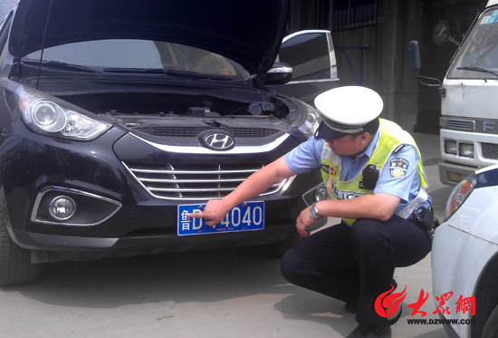 25月29日上午10:20左右,歷下交警大隊石河嶺中隊民警在二環(huán)東路與工業(yè)南路路口進行交通秩序整治時發(fā)現(xiàn),一輛由北向南行駛、號牌為魯DV4**0黑色現(xiàn)代牌越野車存在問題。“車牌號的字體有粘貼過的痕跡,而且字體顏色也較暗。”執(zhí)勤民警王煥超發(fā)現(xiàn)后,準備上前攔截。