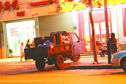 20時30分左右,在濟南火車站附近,記者在偷拍裝載泔水過程時,被司機看到。隨后,三輪車不時走走停停,甚至無故調頭與記者迎面行駛。在緯十二路一路口,三輪車突闖紅燈,記者不得不放棄跟蹤。