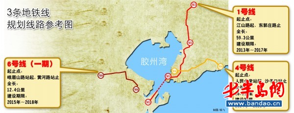 根據(jù)今年3月21日環(huán)保部門公布的地鐵1、4、6號線環(huán)評第二次公示內(nèi)容,1號線自江山路站起,至東郭莊路站止,全長為59.3公里,其中高架段長度為13.8公里,建設(shè)期限為2013年~2017年;4號線自人民會堂站起,至沙子口站止,全長為26.6公里,建設(shè)期限為2014年~2018年;6號線一期自峨眉山路站起,至黃河路站止,全長12.4公里,其中高架路段長度為7公里,建設(shè)期限為2015年~2018年。