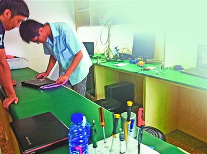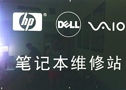 13日13:00左右,記者來到位于山大路的齊魯軟件大廈B302室,維修站內懸掛的塑料牌上,有數個電腦品牌的商標,且寫著“筆記本維修站”。墻上還有維修流程、具體費用等告示牌。