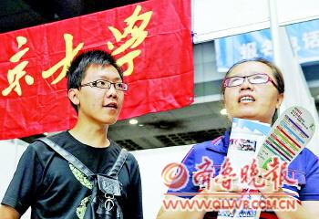 6月25日,在濟南的高招咨詢會上,一名考生從北京大學的咨詢臺前走過。(資料片) 本報記者 王媛 攝