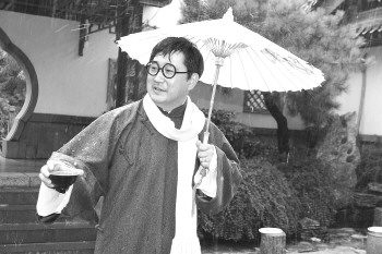 實景演出中,老舍“穿越”來到了趵突泉畔。(記者薛良誠攝)