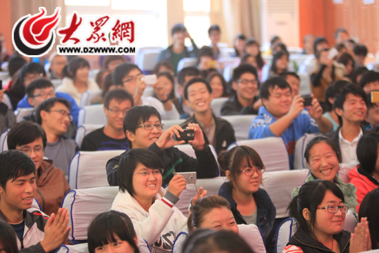 上午11點,在第二屆網絡歌手大賽啟動儀式的最后,一位神秘嘉賓的現身引發了現場的一片驚呼和掌聲,他就是首屆歌手大賽冠軍、“中國好聲音”學員曹寅。雖然昨天深夜才剛從三亞趕回濟南,但曹寅依舊精神飽滿的和在座的師生們打起了招呼,并為新一屆的網絡個歌手大賽送上了祝福。
