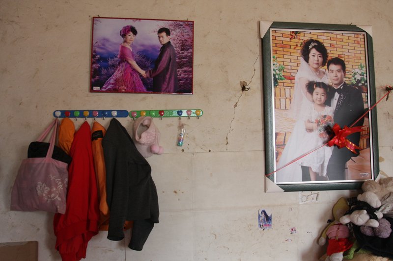 墻上掛著的照片證明著這個家庭曾經的美好。(大眾網網友 施曉亮 攝)