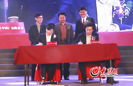 完美山東分公司經(jīng)理王妍和山東大眾傳媒股份有限公司(大眾網(wǎng))董事長、總經(jīng)理林忠禮在捐建項(xiàng)目協(xié)議上簽字。記者 張帆 攝