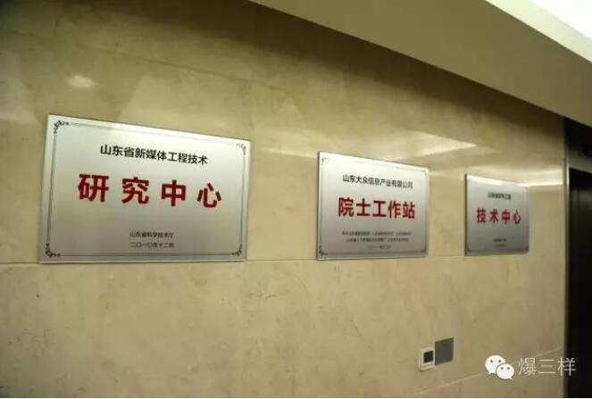 這一層還有我們的山東大眾信息產業有限公司(山東省互聯網傳媒集團的全資子公司),這可是網媒集團“一體兩翼”戰略發展布局中重要的一翼,看看這些招牌:山東省新媒體工程技術研究中心、院士工作站、山東省軟件工程技術中心……信產公司喊出了自己的口號:力爭成為國內領先的電子政務提供商。