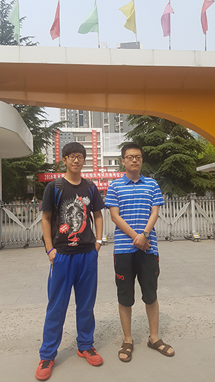 在今天山師附中考點陪考的人群中,還有兩個穿著校服的年輕人也比較惹人注目。他們站在考點外時,不時會有“蹲點”的記者上前來詢問他們是否是考生。“其實我們是山師附中幸福柳校區高二的學生,因為學生把教室騰做了考場,我們就想到考點外提前感受下高考氣氛。”兩人中性格比較外向的祁培宸告訴記者,來考場感受高考氣氛,也算是老師在高考假期里給班里同學布置的一項“任務”。