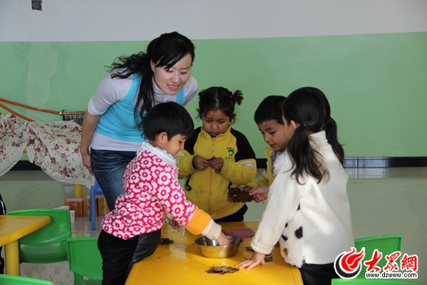 為了更好地給孩子們教授普通話,王小瑋在園長的支持下,在幼兒園實(shí)行了混齡教育。每天上午的課程結(jié)束后,下午打亂年齡重新分班上課。這樣,大些的孩子能夠分擔(dān)部分翻譯的工作,實(shí)際教學(xué)的效果更好。王小瑋還根據(jù)老師的特長,以及孩子們的興趣,組建了快板、美工、舞蹈、手鼓等十幾個(gè)特色小組,并在此基礎(chǔ)上成立了幼兒園“表演藝術(shù)團(tuán)”,孩子們的興趣特長得到了很好的發(fā)展,過“六一”兒童節(jié)的時(shí)候都不用事先排練節(jié)目,隨時(shí)都可以上場(chǎng)表演。