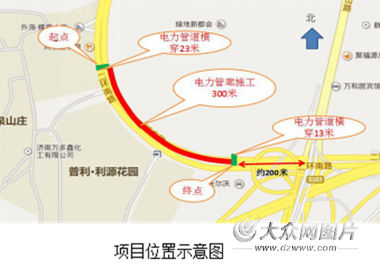 大眾網濟南7月13日 記者從濟南市政部門獲悉,7月19日順河高架橋南延二環南路段約300米電纜通道進行施工,起點為二環南路外海蝶泉山莊東門北側電力鐵塔,終點為二環南路十六里河橋電力鐵塔(英雄山立交西北角約200米處)。施工為期40天,計劃于8月27日完成。